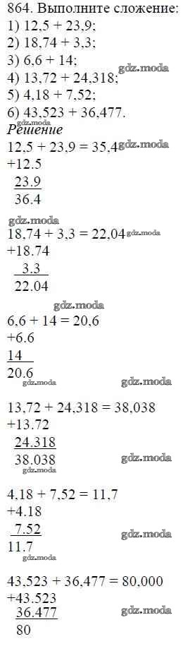 ОТВЕТ на задание № 864 Учебник по Математике 5 класс Мерзляк Алгоритм успеха