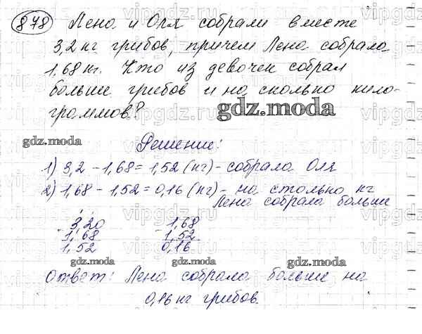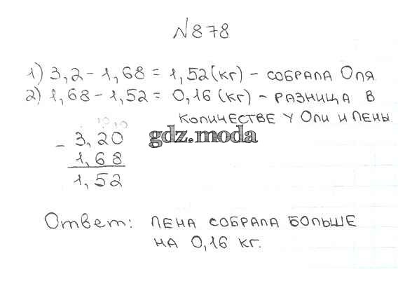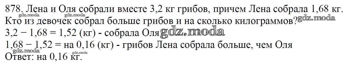 ОТВЕТ на задание № 878 Учебник по Математике 5 класс Мерзляк Алгоритм успеха