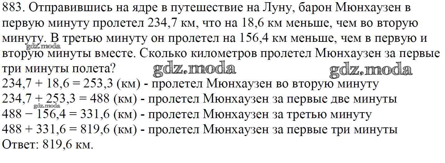 ОТВЕТ на задание № 883 Учебник по Математике 5 класс Мерзляк Алгоритм успеха