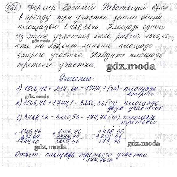 ОТВЕТ на задание № 886 Учебник по Математике 5 класс Мерзляк Алгоритм успеха