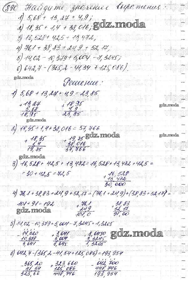 ОТВЕТ на задание № 890 Учебник по Математике 5 класс Мерзляк Алгоритм успеха