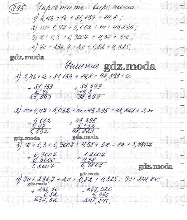 ОТВЕТ на задание № 895 Учебник по Математике 5 класс Мерзляк Алгоритм успеха
