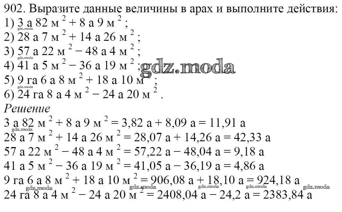 ОТВЕТ на задание № 902 Учебник по Математике 5 класс Мерзляк Алгоритм успеха