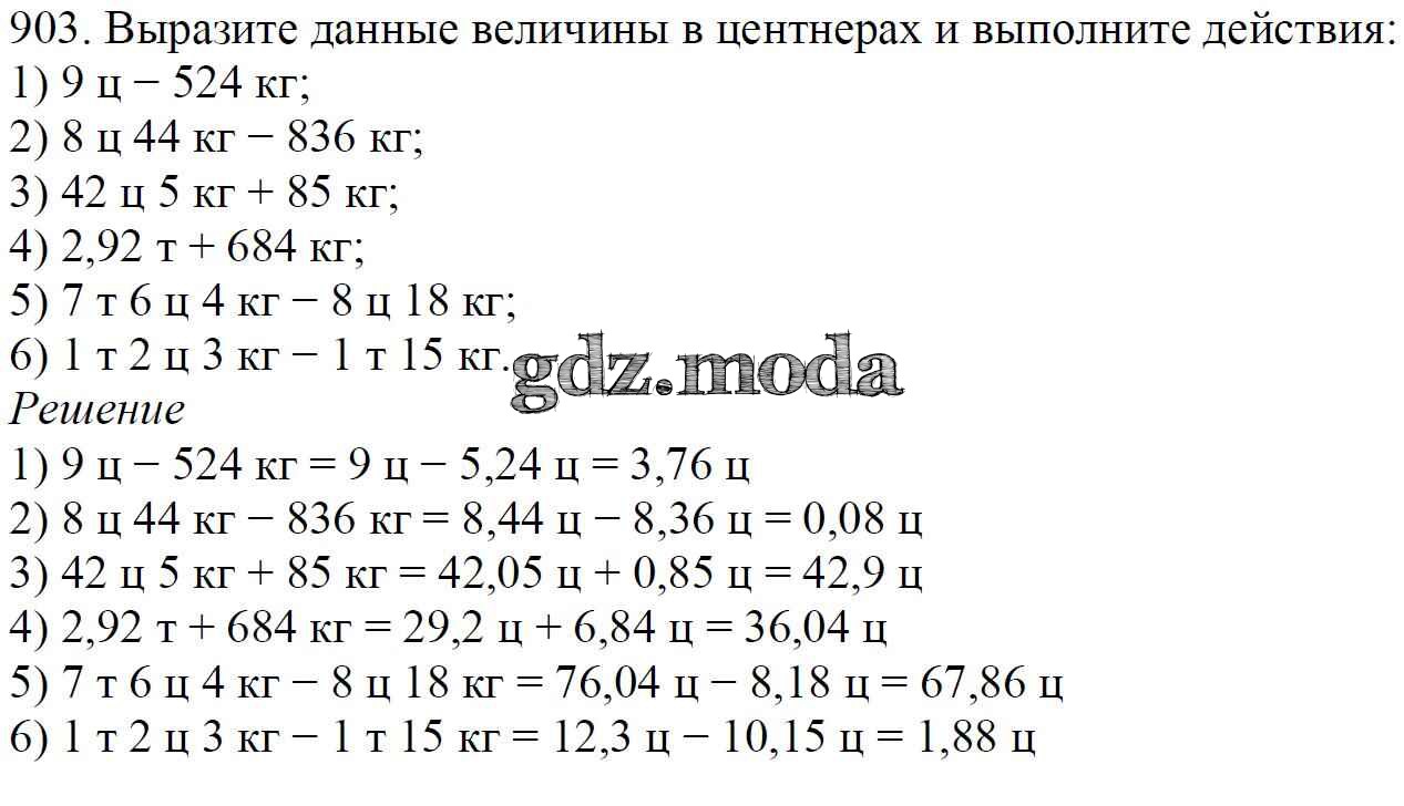 ОТВЕТ на задание № 903 Учебник по Математике 5 класс Мерзляк Алгоритм успеха