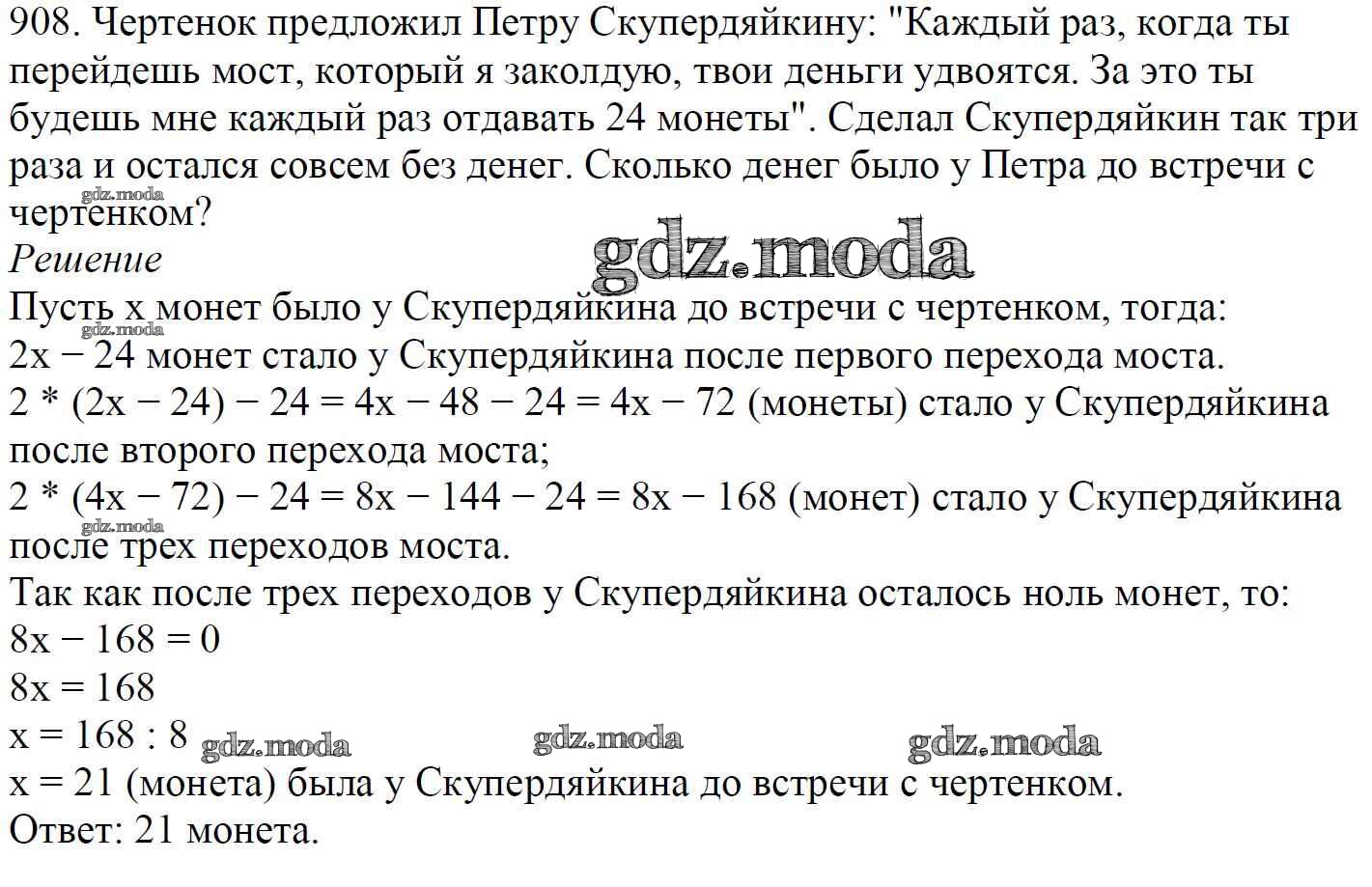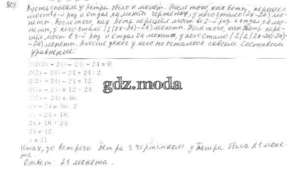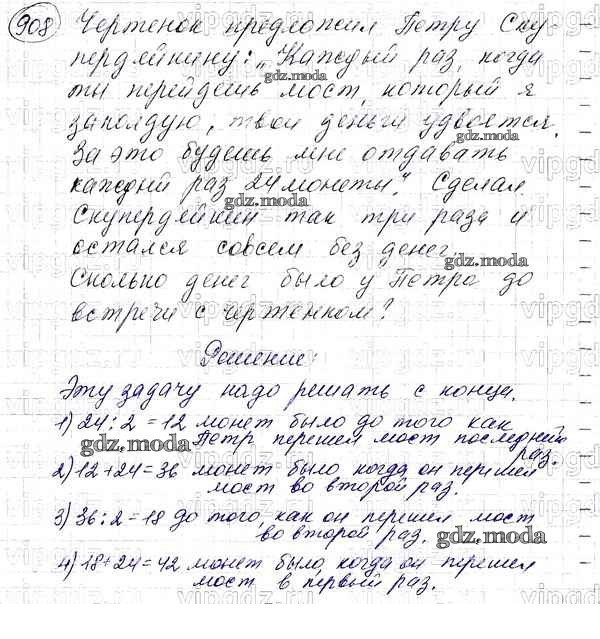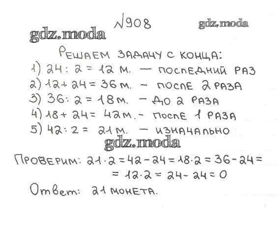 ОТВЕТ на задание № 908 Учебник по Математике 5 класс Мерзляк Алгоритм успеха