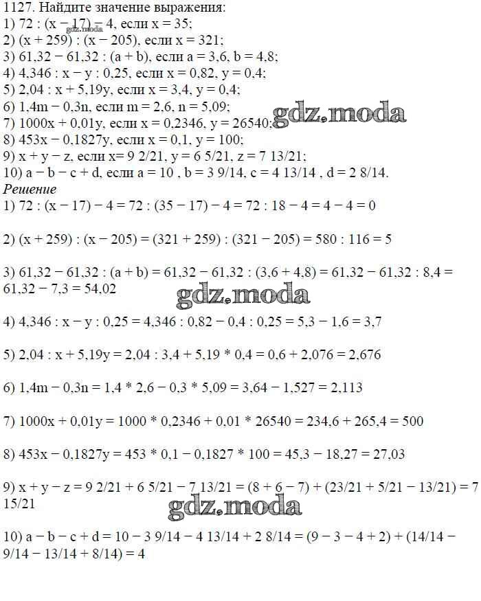 ОТВЕТ на задание № 1127 Учебник по Математике 5 класс Мерзляк Алгоритм успеха