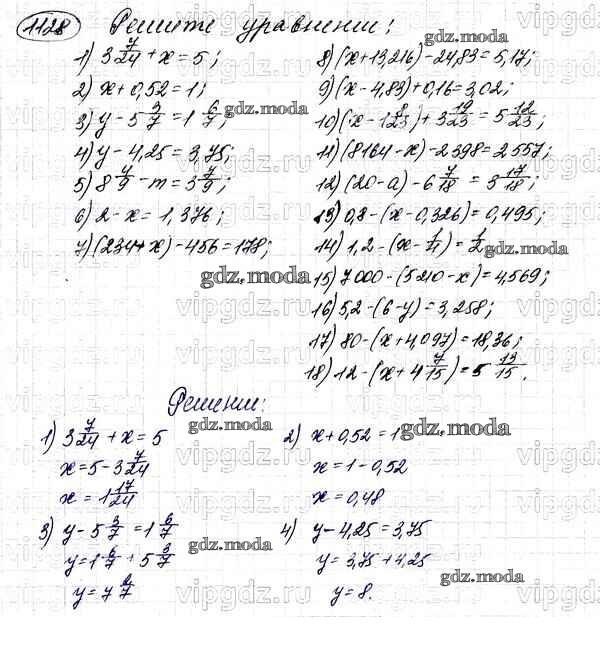 ОТВЕТ на задание № 1128 Учебник по Математике 5 класс Мерзляк Алгоритм успеха