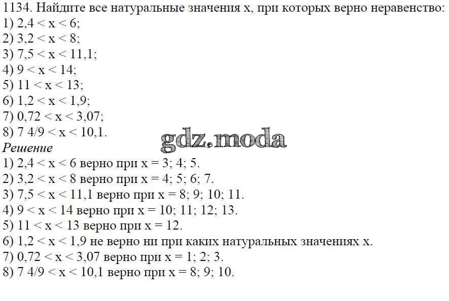 ОТВЕТ на задание № 1134 Учебник по Математике 5 класс Мерзляк Алгоритм успеха
