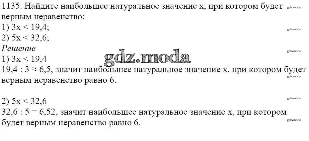 ОТВЕТ на задание № 1135 Учебник по Математике 5 класс Мерзляк Алгоритм успеха