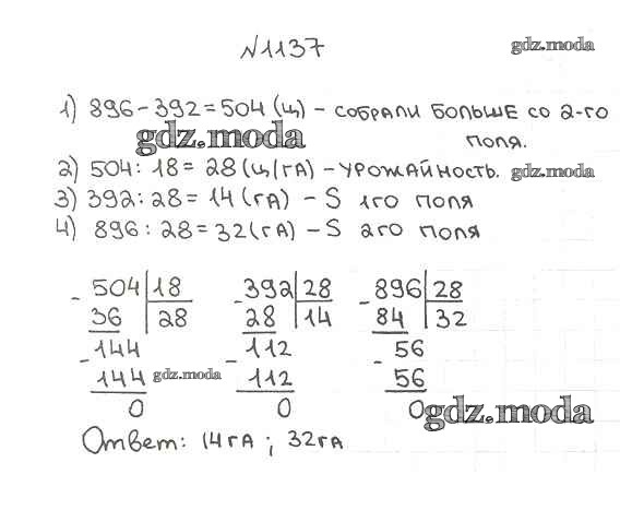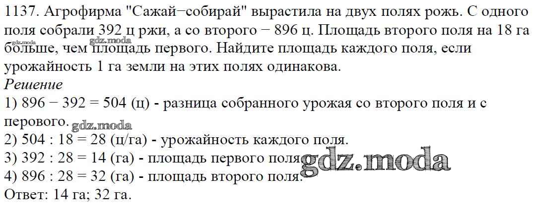 ОТВЕТ на задание № 1137 Учебник по Математике 5 класс Мерзляк Алгоритм успеха