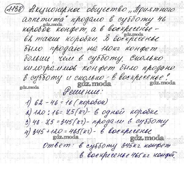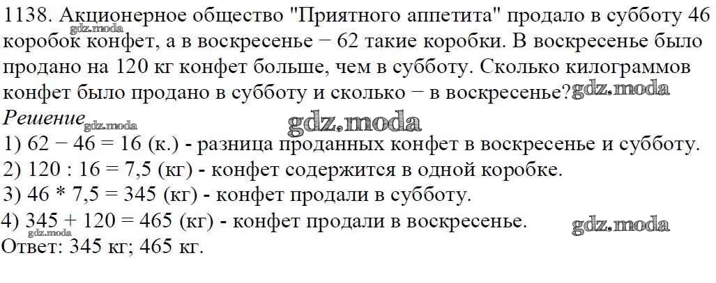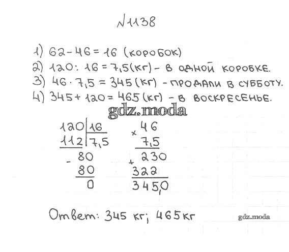 ОТВЕТ на задание № 1138 Учебник по Математике 5 класс Мерзляк Алгоритм успеха
