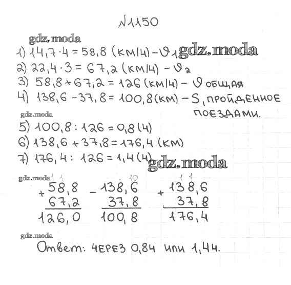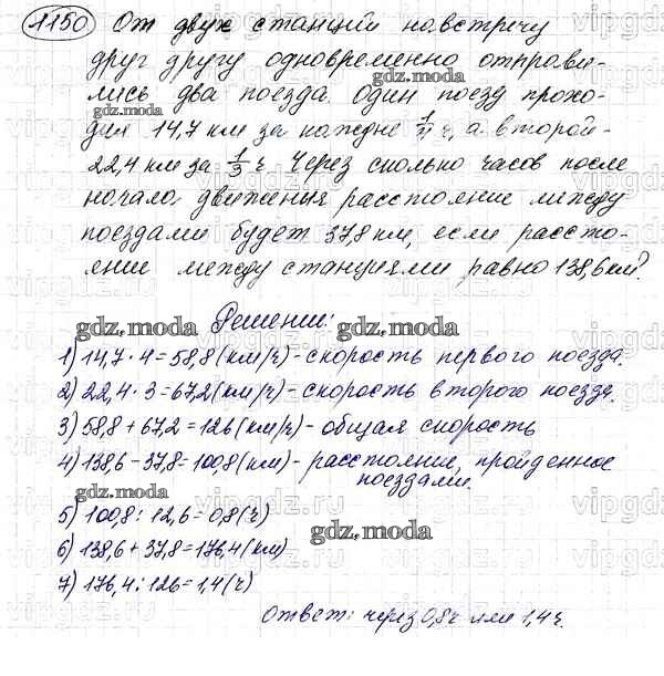 ОТВЕТ на задание № 1150 Учебник по Математике 5 класс Мерзляк Алгоритм успеха