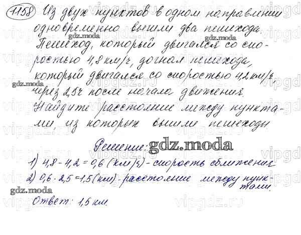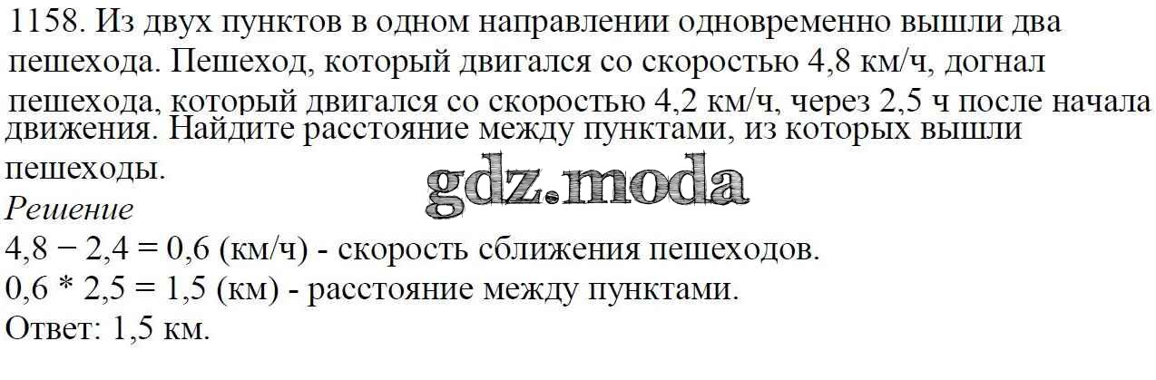 ОТВЕТ на задание № 1158 Учебник по Математике 5 класс Мерзляк Алгоритм успеха