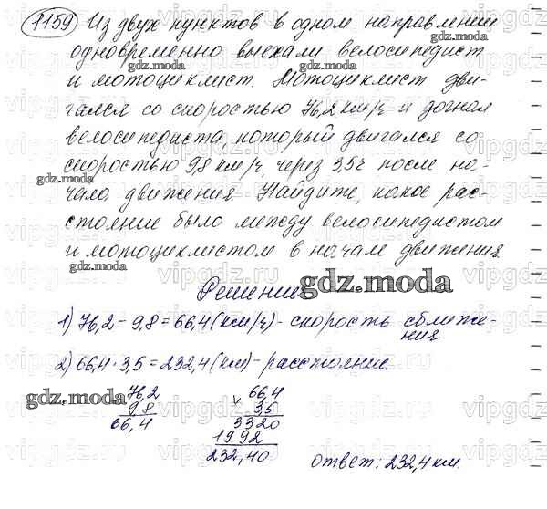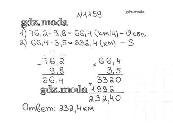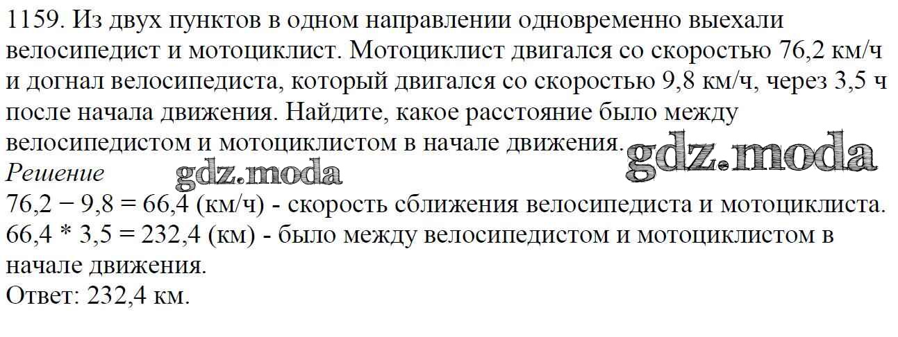 ОТВЕТ на задание № 1159 Учебник по Математике 5 класс Мерзляк Алгоритм успеха
