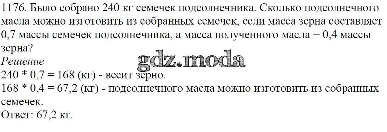 ОТВЕТ на задание № 1176 Учебник по Математике 5 класс Мерзляк Алгоритм успеха