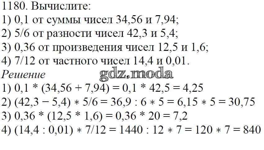 ОТВЕТ на задание № 1180 Учебник по Математике 5 класс Мерзляк Алгоритм успеха