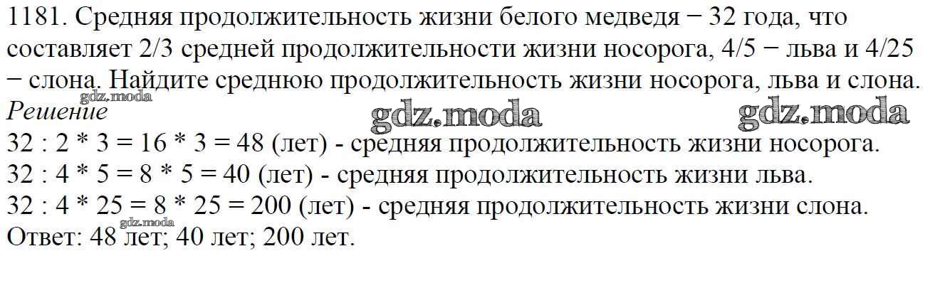 ОТВЕТ на задание № 1181 Учебник по Математике 5 класс Мерзляк Алгоритм успеха