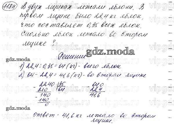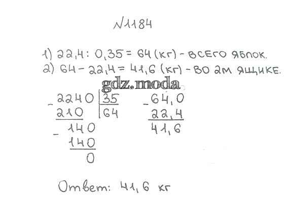 ОТВЕТ на задание № 1184 Учебник по Математике 5 класс Мерзляк Алгоритм успеха