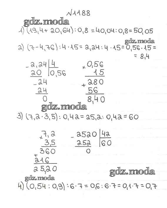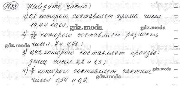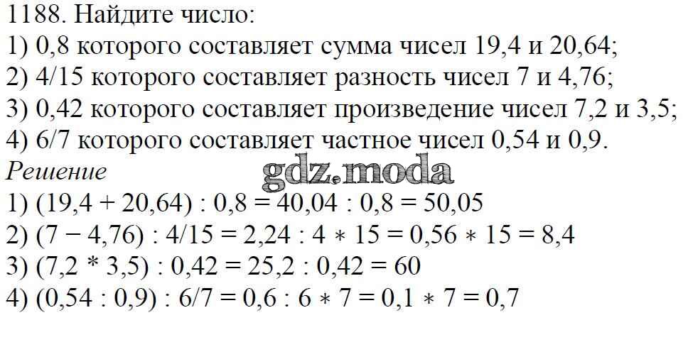 ОТВЕТ на задание № 1188 Учебник по Математике 5 класс Мерзляк Алгоритм успеха