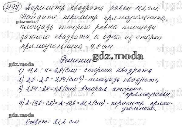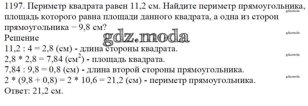 ОТВЕТ на задание № 1197 Учебник по Математике 5 класс Мерзляк Алгоритм успеха