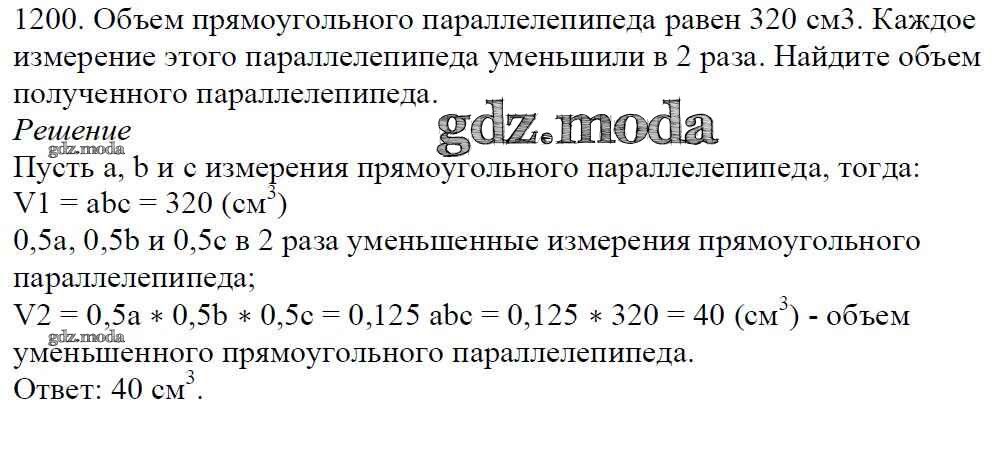 ОТВЕТ на задание № 1200 Учебник по Математике 5 класс Мерзляк Алгоритм успеха