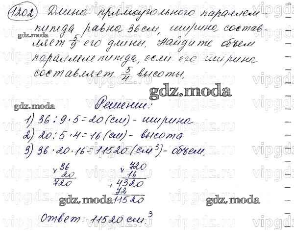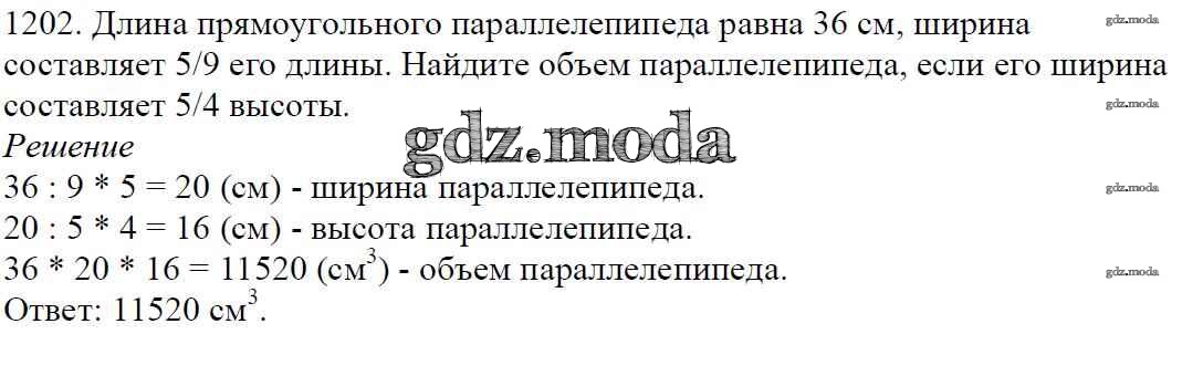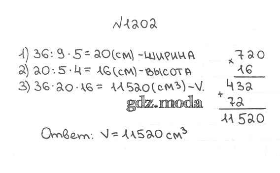 ОТВЕТ на задание № 1202 Учебник по Математике 5 класс Мерзляк Алгоритм успеха