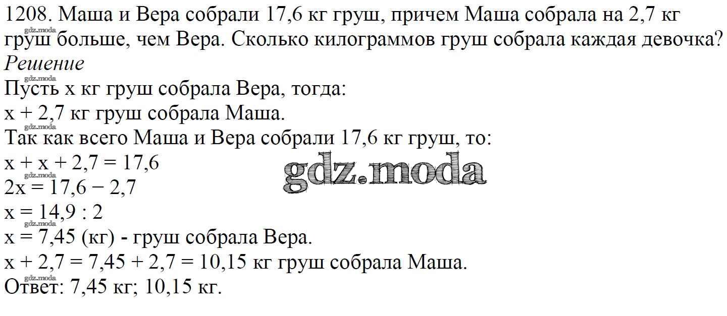 ОТВЕТ на задание № 1208 Учебник по Математике 5 класс Мерзляк Алгоритм успеха