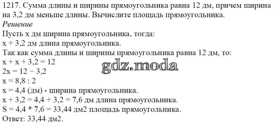 ОТВЕТ на задание № 1217 Учебник по Математике 5 класс Мерзляк Алгоритм успеха