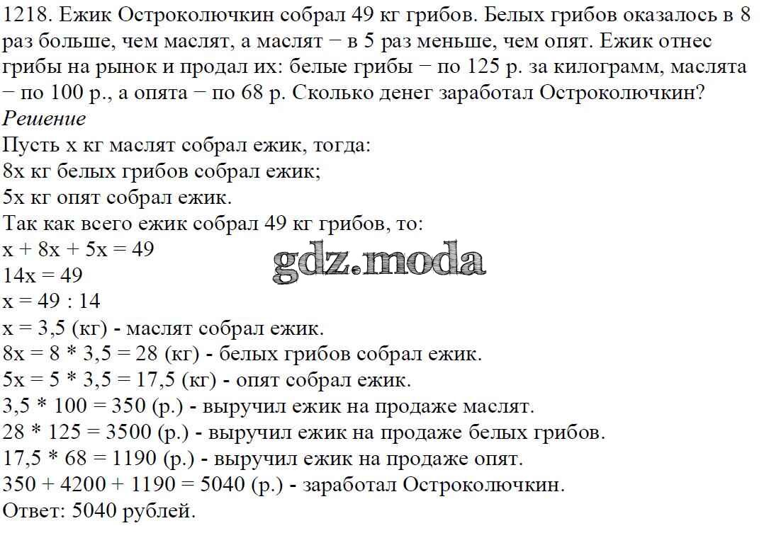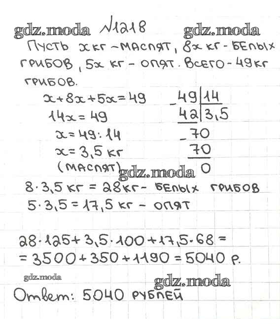 ОТВЕТ на задание № 1218 Учебник по Математике 5 класс Мерзляк Алгоритм успеха