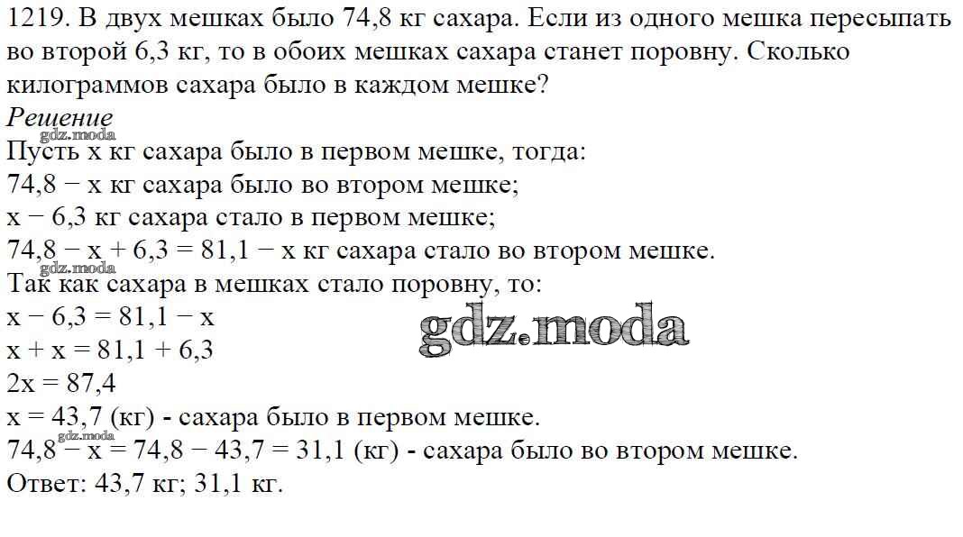 ОТВЕТ на задание № 1219 Учебник по Математике 5 класс Мерзляк Алгоритм успеха
