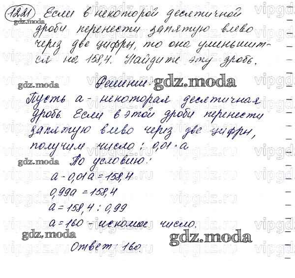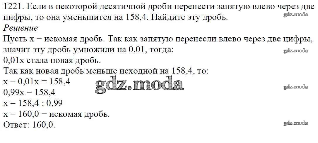 ОТВЕТ на задание № 1221 Учебник по Математике 5 класс Мерзляк Алгоритм успеха