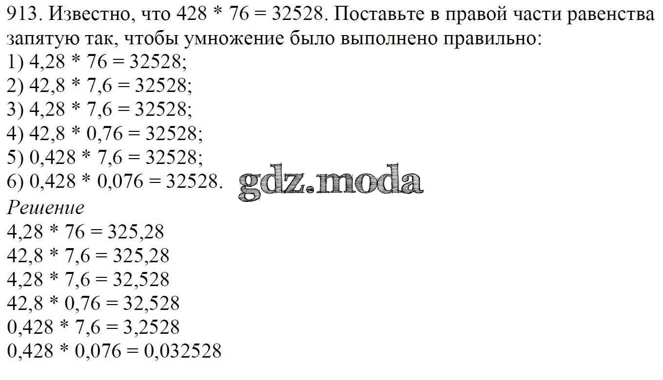 ОТВЕТ на задание № 913 Учебник по Математике 5 класс Мерзляк Алгоритм успеха