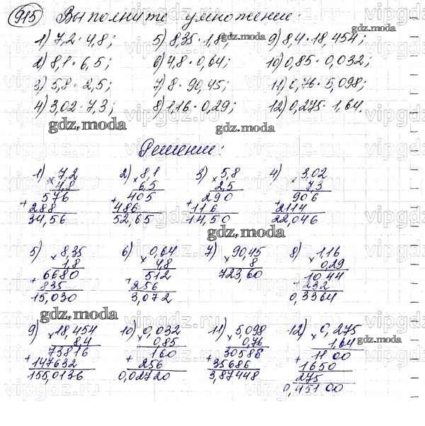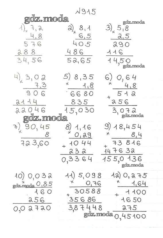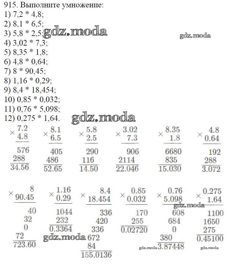 ОТВЕТ на задание № 915 Учебник по Математике 5 класс Мерзляк Алгоритм успеха