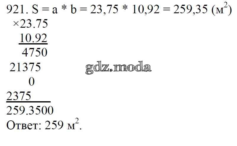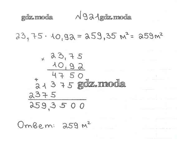 ОТВЕТ на задание № 921 Учебник по Математике 5 класс Мерзляк Алгоритм успеха