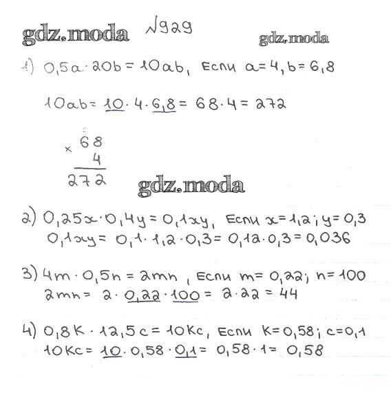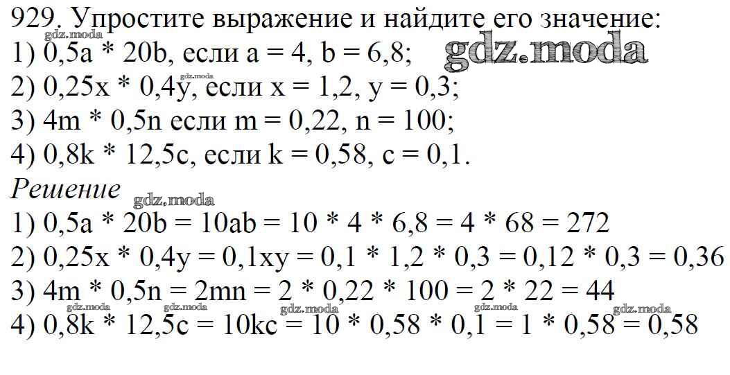 ОТВЕТ на задание № 929 Учебник по Математике 5 класс Мерзляк Алгоритм успеха