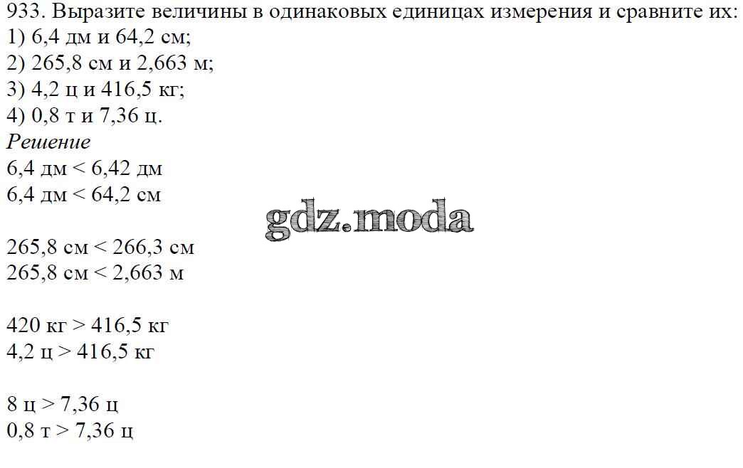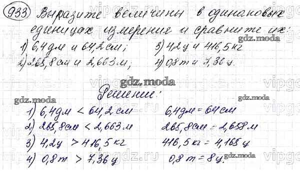 ОТВЕТ на задание № 933 Учебник по Математике 5 класс Мерзляк Алгоритм успеха