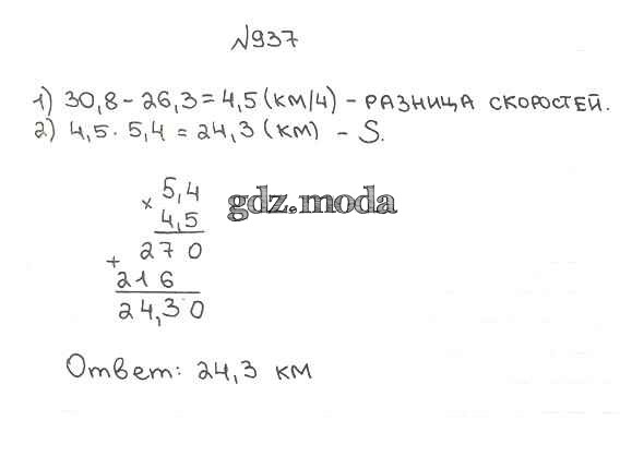 ОТВЕТ на задание № 937 Учебник по Математике 5 класс Мерзляк Алгоритм успеха