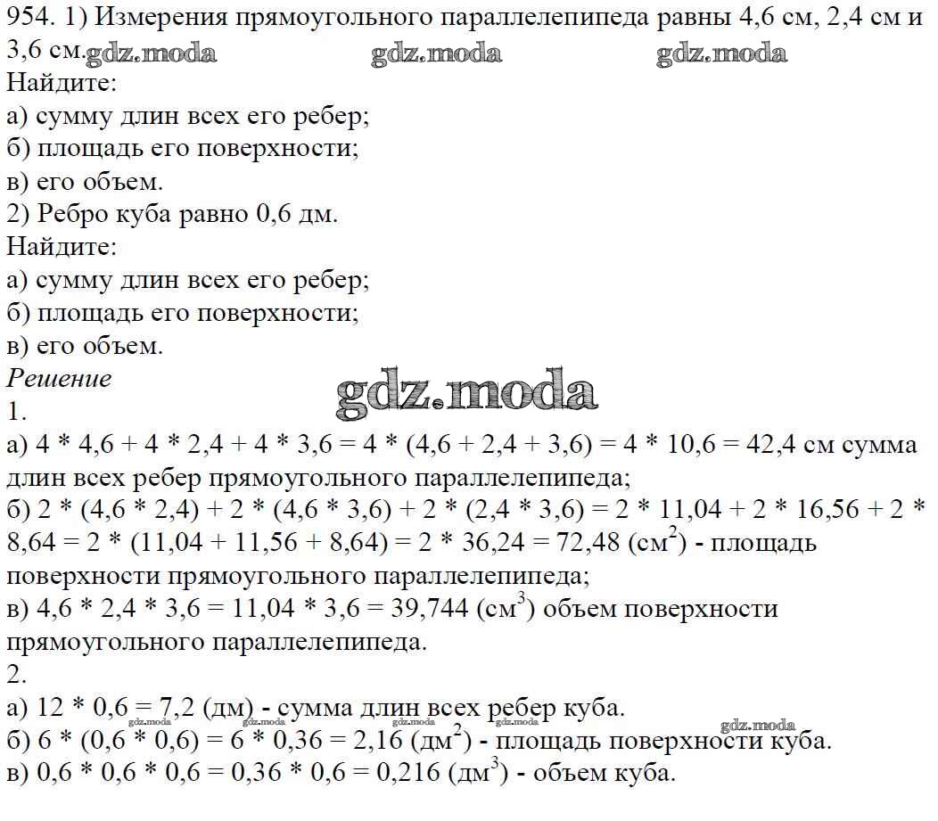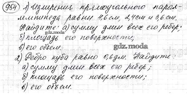 ОТВЕТ на задание № 954 Учебник по Математике 5 класс Мерзляк Алгоритм успеха