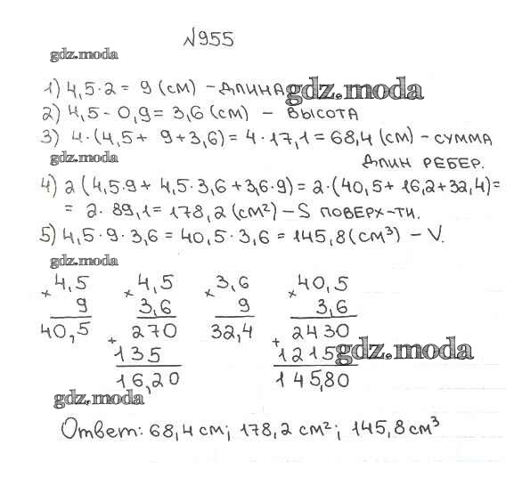 ОТВЕТ на задание № 955 Учебник по Математике 5 класс Мерзляк Алгоритм успеха