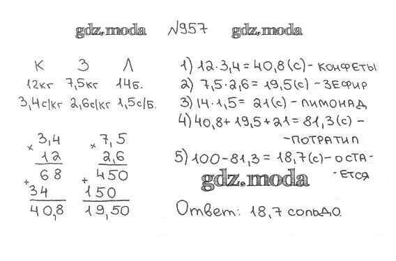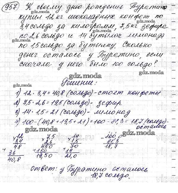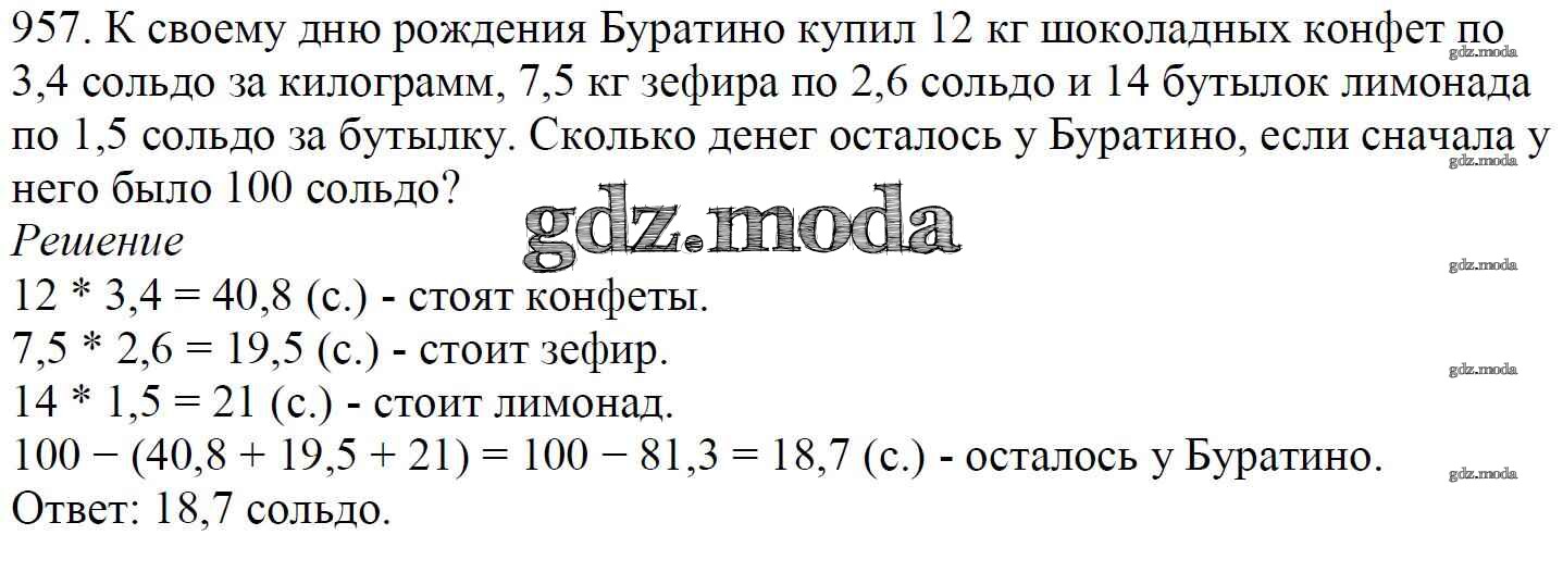 ОТВЕТ на задание № 957 Учебник по Математике 5 класс Мерзляк Алгоритм успеха