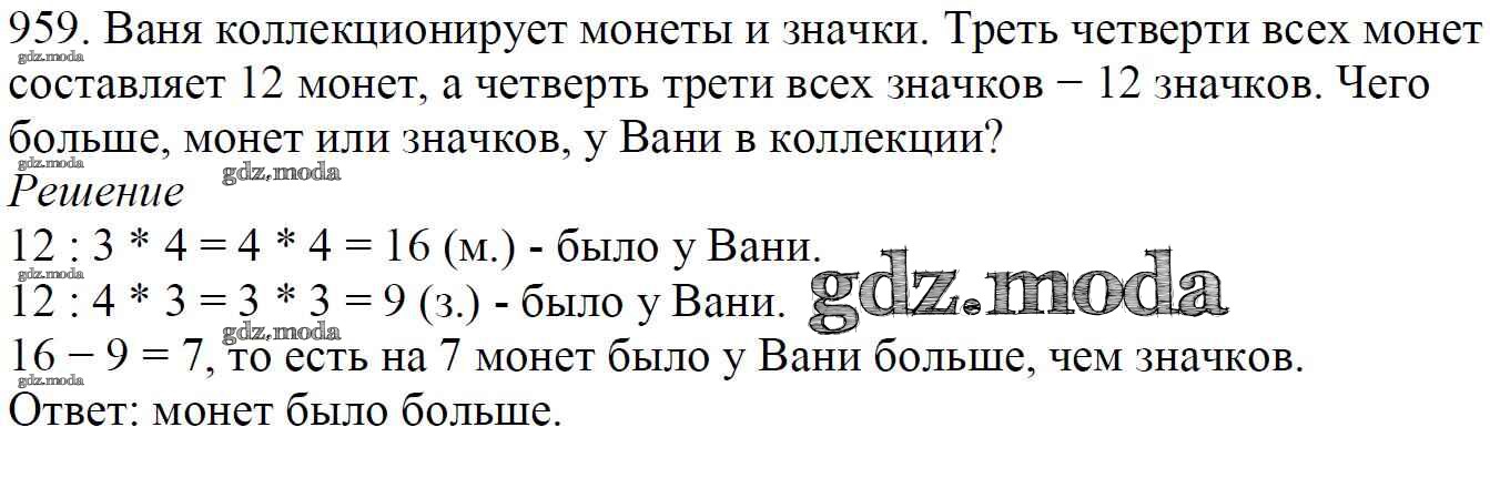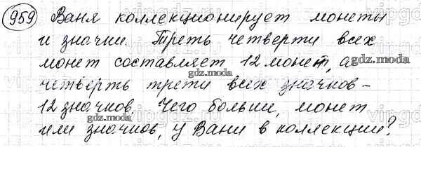 ОТВЕТ на задание № 959 Учебник по Математике 5 класс Мерзляк Алгоритм успеха