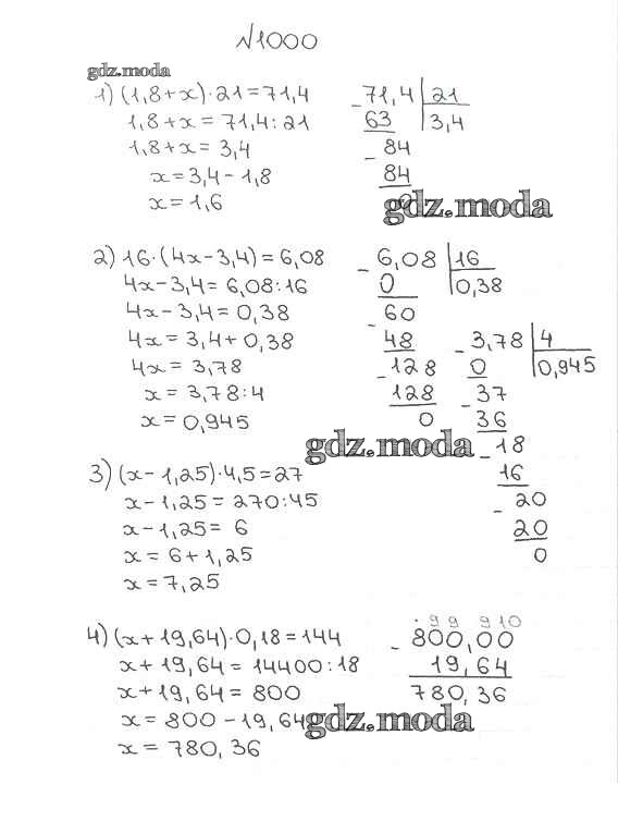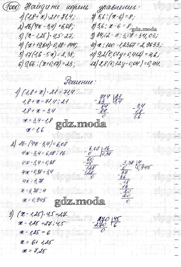 ОТВЕТ на задание № 1000 Учебник по Математике 5 класс Мерзляк Алгоритм успеха