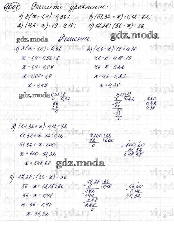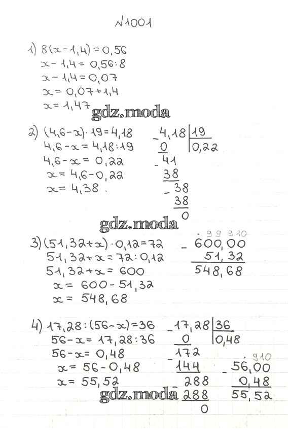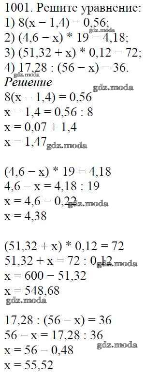 ОТВЕТ на задание № 1001 Учебник по Математике 5 класс Мерзляк Алгоритм успеха