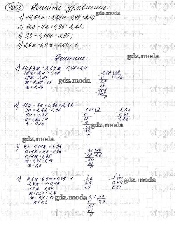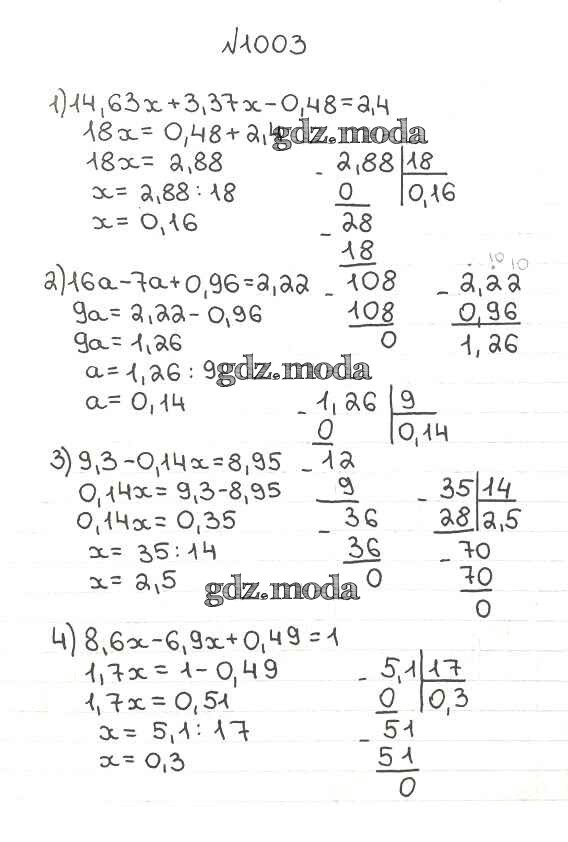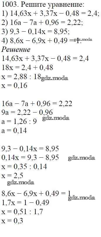 ОТВЕТ на задание № 1003 Учебник по Математике 5 класс Мерзляк Алгоритм успеха