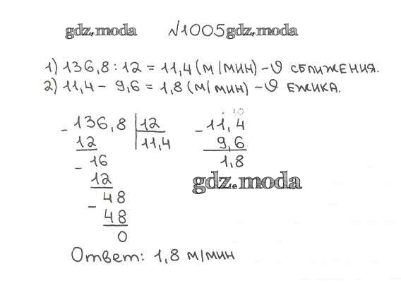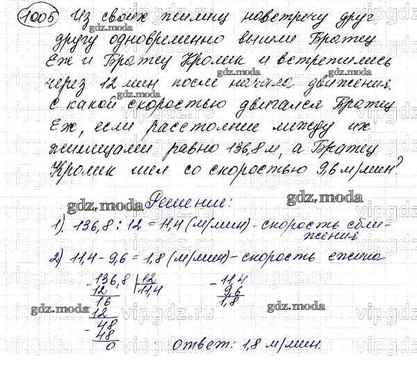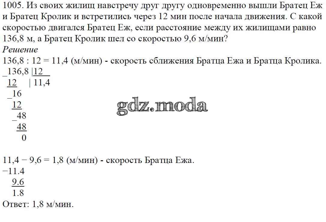 ОТВЕТ на задание № 1005 Учебник по Математике 5 класс Мерзляк Алгоритм успеха