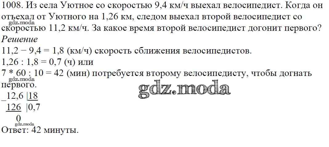 ОТВЕТ на задание № 1008 Учебник по Математике 5 класс Мерзляк Алгоритм успеха