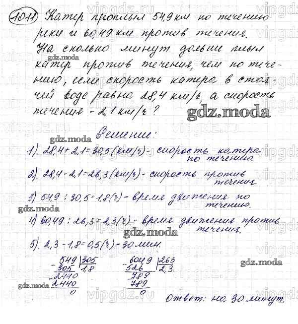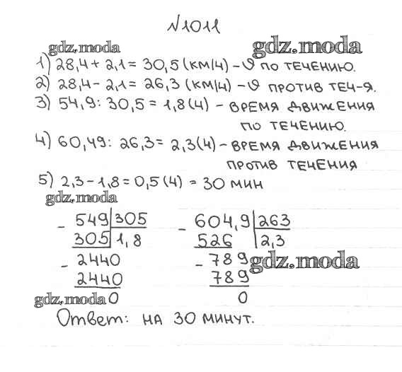 ОТВЕТ на задание № 1011 Учебник по Математике 5 класс Мерзляк Алгоритм успеха