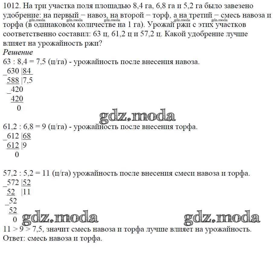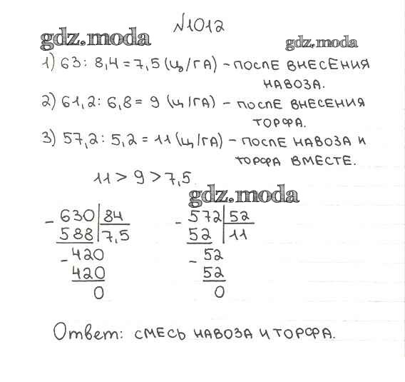 ОТВЕТ на задание № 1012 Учебник по Математике 5 класс Мерзляк Алгоритм успеха