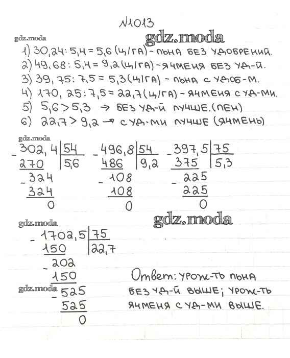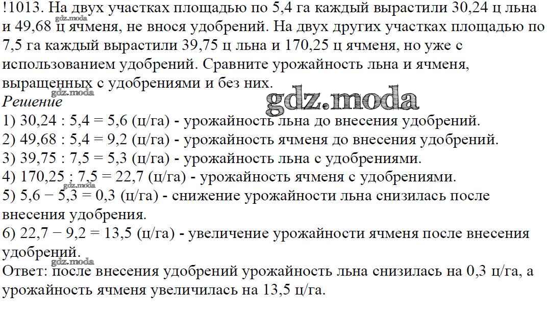 ОТВЕТ на задание № 1013 Учебник по Математике 5 класс Мерзляк Алгоритм успеха