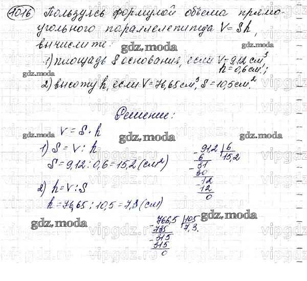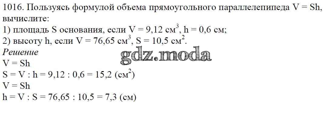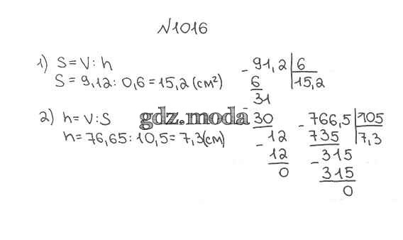 ОТВЕТ на задание № 1016 Учебник по Математике 5 класс Мерзляк Алгоритм успеха